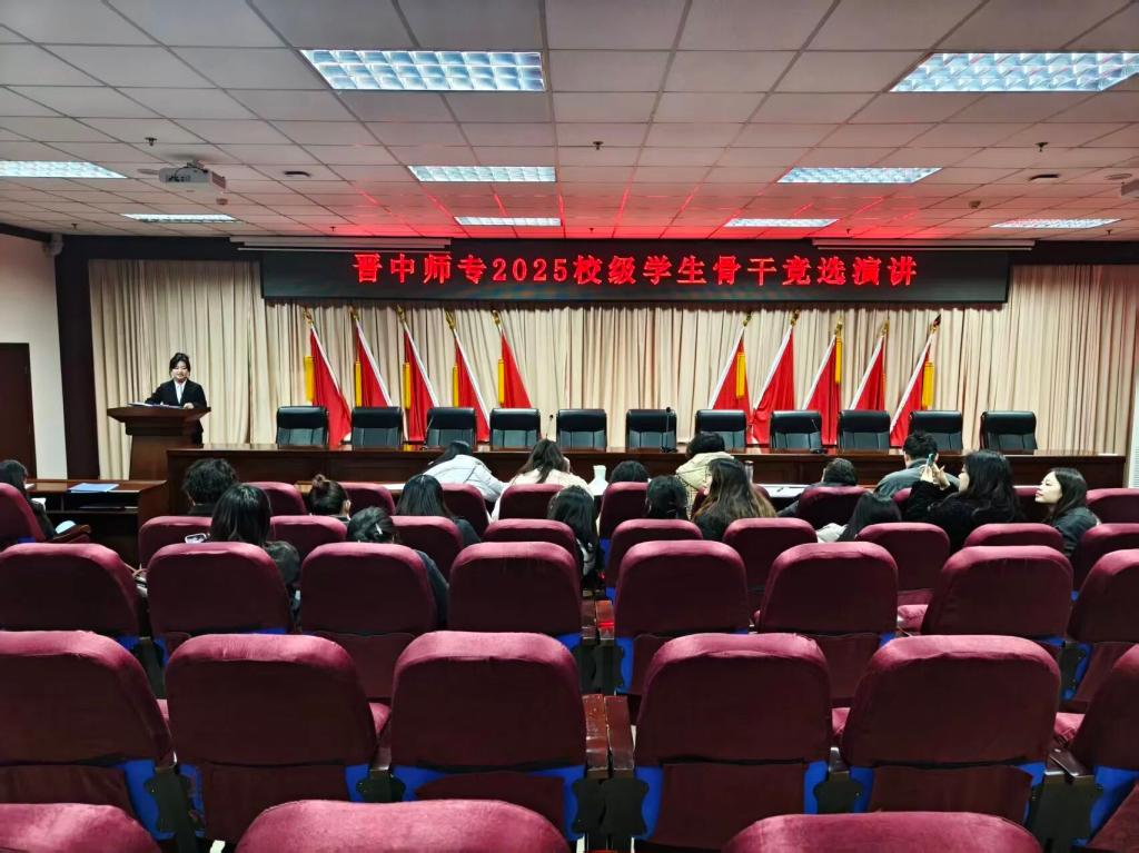 为进一步加强学生干部队伍建设,提升队伍整体素质与凝聚力,推动校团委会、学生会高效运作与持续发展,更好地发挥其引领青年、服务青年的核心作用,10月22日,我校校级学生骨干竞选演讲在行政楼二层报告厅举行。团委全体老师、校学生会主席及团委会、学生会各部门部长参加,共同见证青年学子的责任与担当。